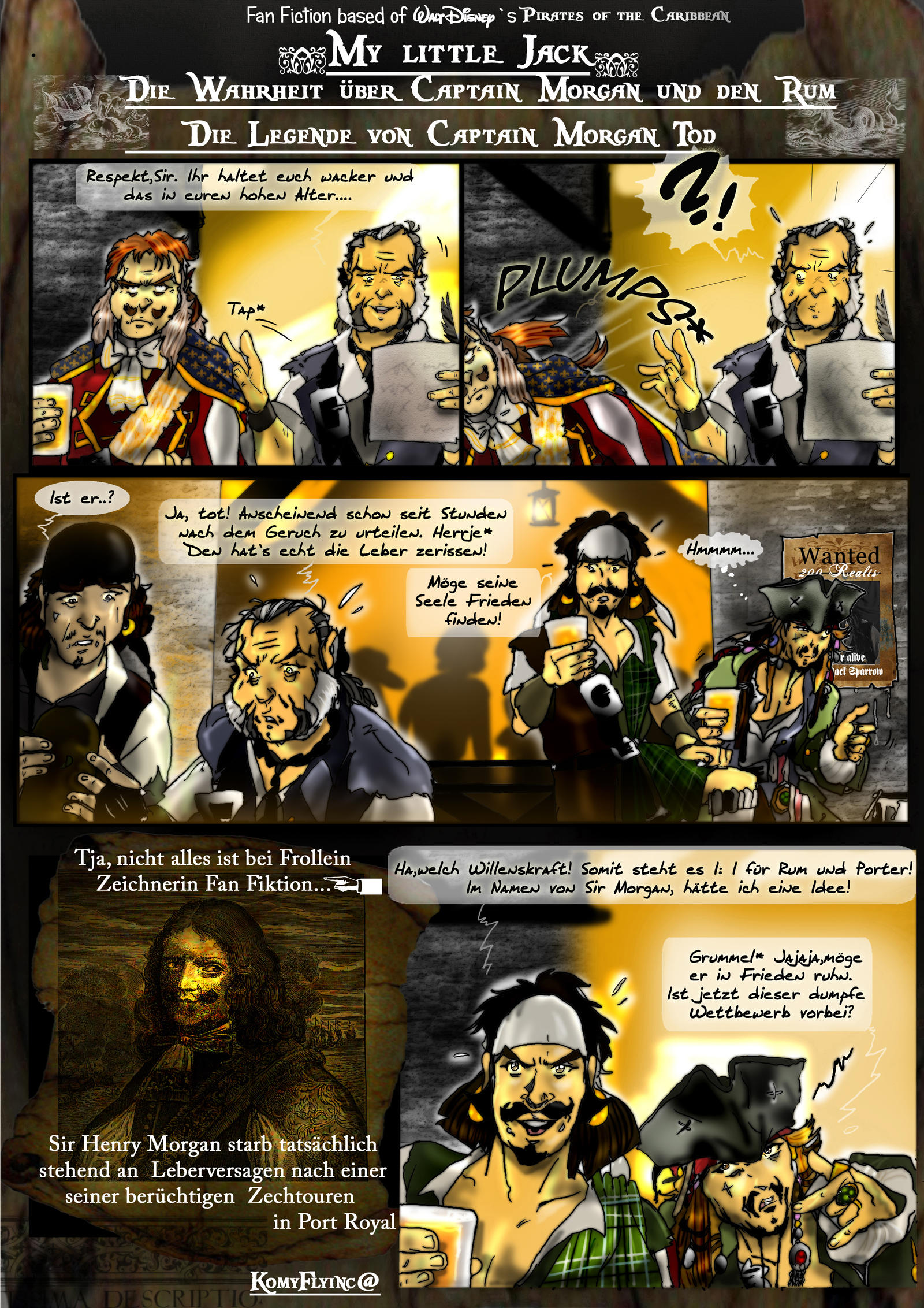 Tja,nicht alles ist total ausgedacht bei mir.Es ist Tatsache passiert das Sir Henry Morgan bei einen seinen legendären Saufgelagen stehend in einer Taverne starb an einer geplatzten Leber in Port Royal. Na dann Prost...
