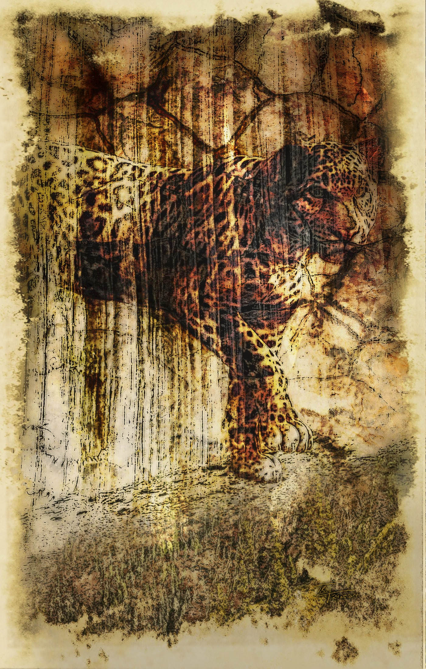 Das Hauptmotiv, hier Jaguar, würde ich nicht so stark überdecken, sondern mit Masken gezielt freier, präsenter gestalten.