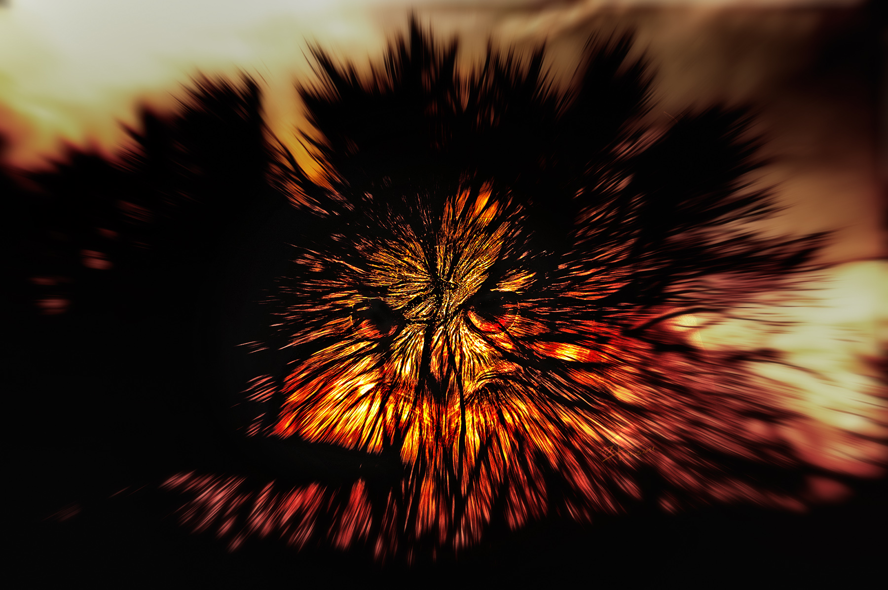 Hier habe ich lediglich 3 eigene Fotos verbaut; die Eule, den Baum (im Original verschneit) und den Himmel.