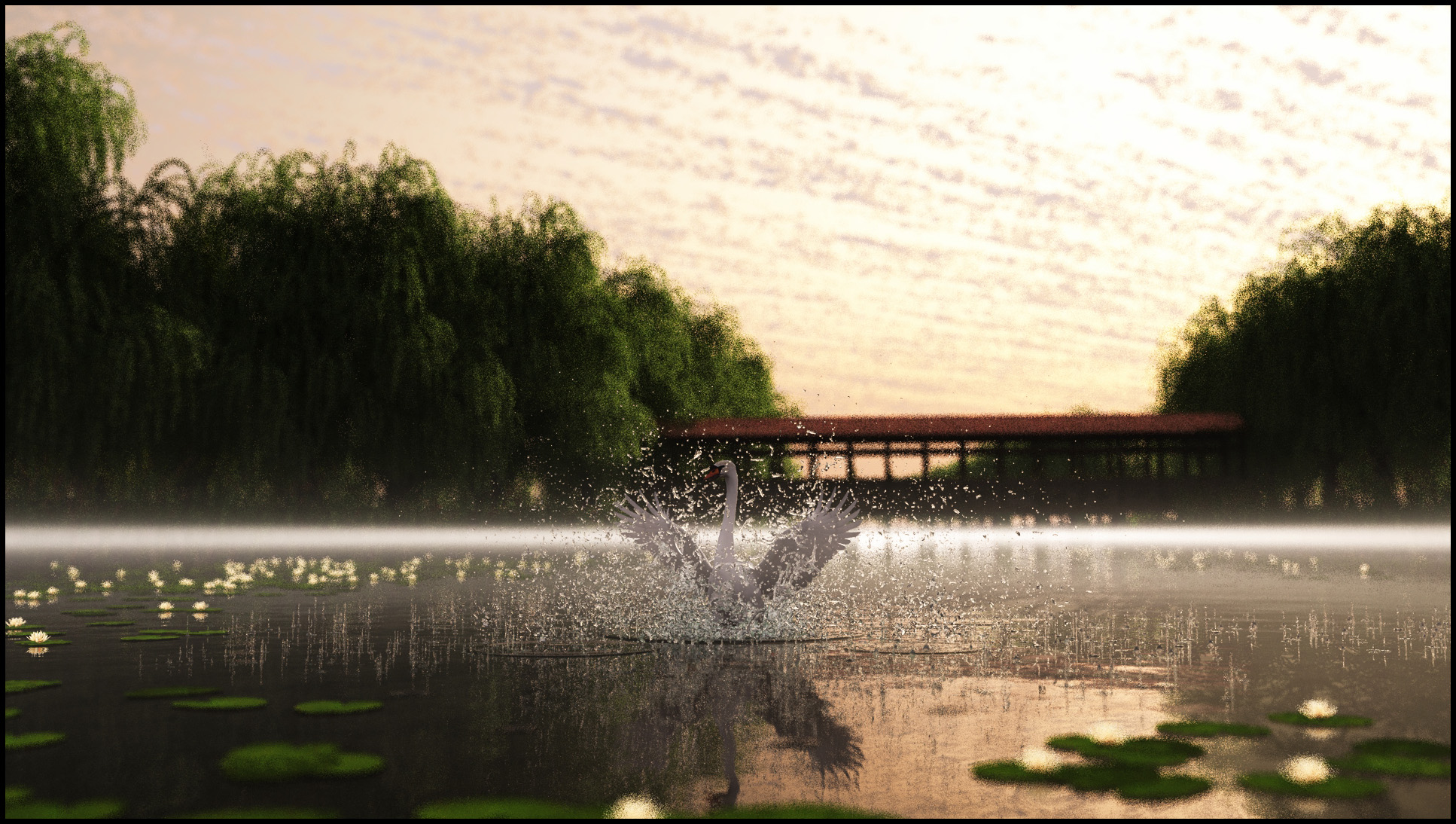 Die richtige Beleuchtung zu finden und den Kontrast, so das das Wasser halbwegs wirkt ist auch ein echter Drahtseilakt. Außerdem mußte ich die Brücke völlig neu machen. Dafür hat sie jetzt auch gleich ein neues Dach
