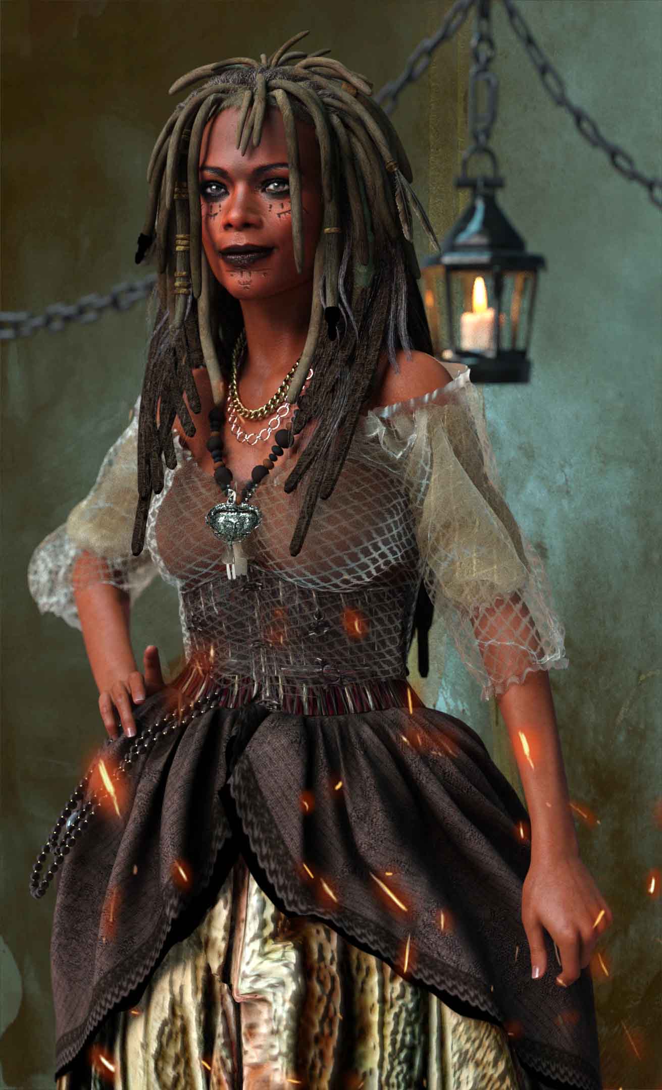 In unseren illustren PotC Damen Reihe darf natürlich die mächtige Vodoohexe Tia Dalma nicht fehlen ...einst die Seegottheit Calypso gefangen genommen vom ersten Rat der Bruderschaft der Piratenlords,verraten von ihren eigenen Geliebten Davy Jones ,eingesperrt ihr unsterbliches Wesen in einen sterblichen Körper.