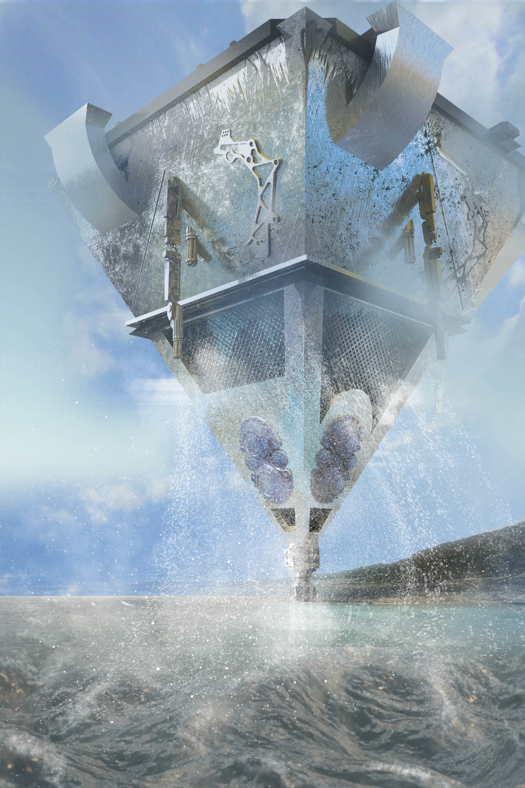 Ist laut Autor eine etwa 100 m (Abmaße) große, pyramidenförmige 'Fabrik" zur Entgiftung der Meere. Angetrieben : AntiGrav.