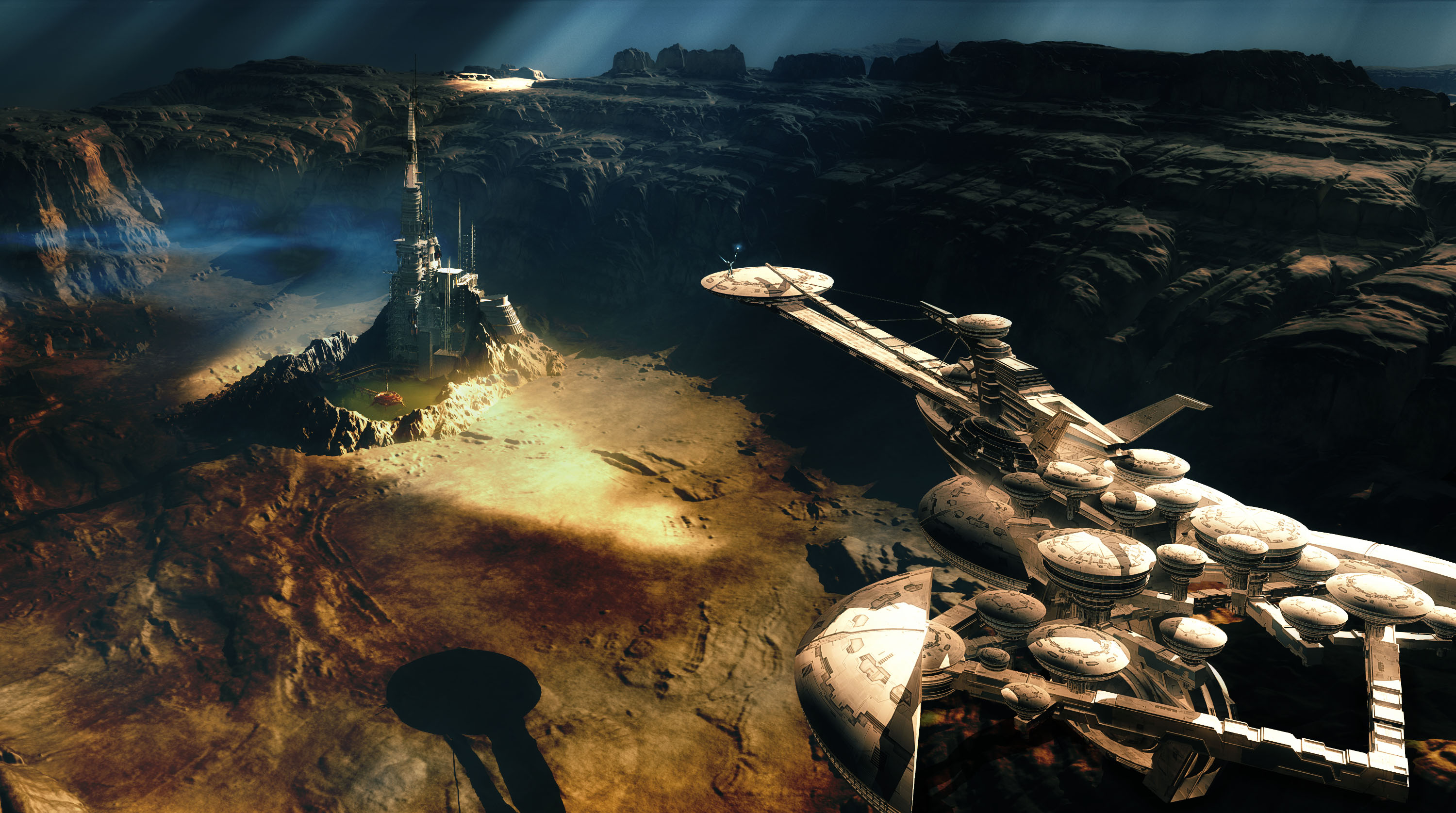 Gerendert in Vue, Gelände aus WorldMachine, "Space - Staation" und "Typ" aus Poser - zum größten Teil fertiggestellt bereits Ende Januar 2017 - eben gerade letzte "Feinheiten" (Update) in PS... ![]()