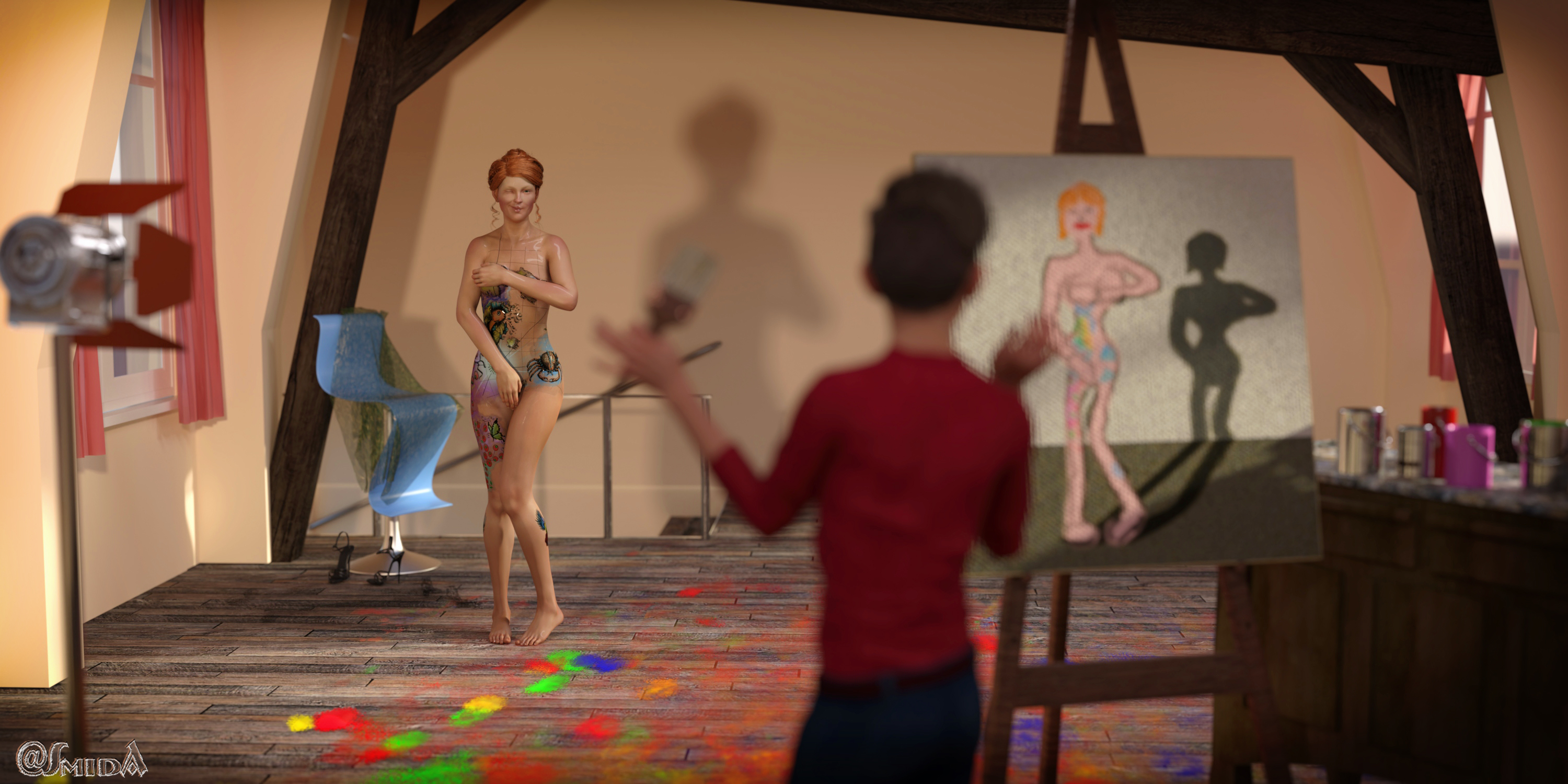 Lol, der möchtegern Künstler versucht ein Kunstwerk (das Mädel) zu malen.