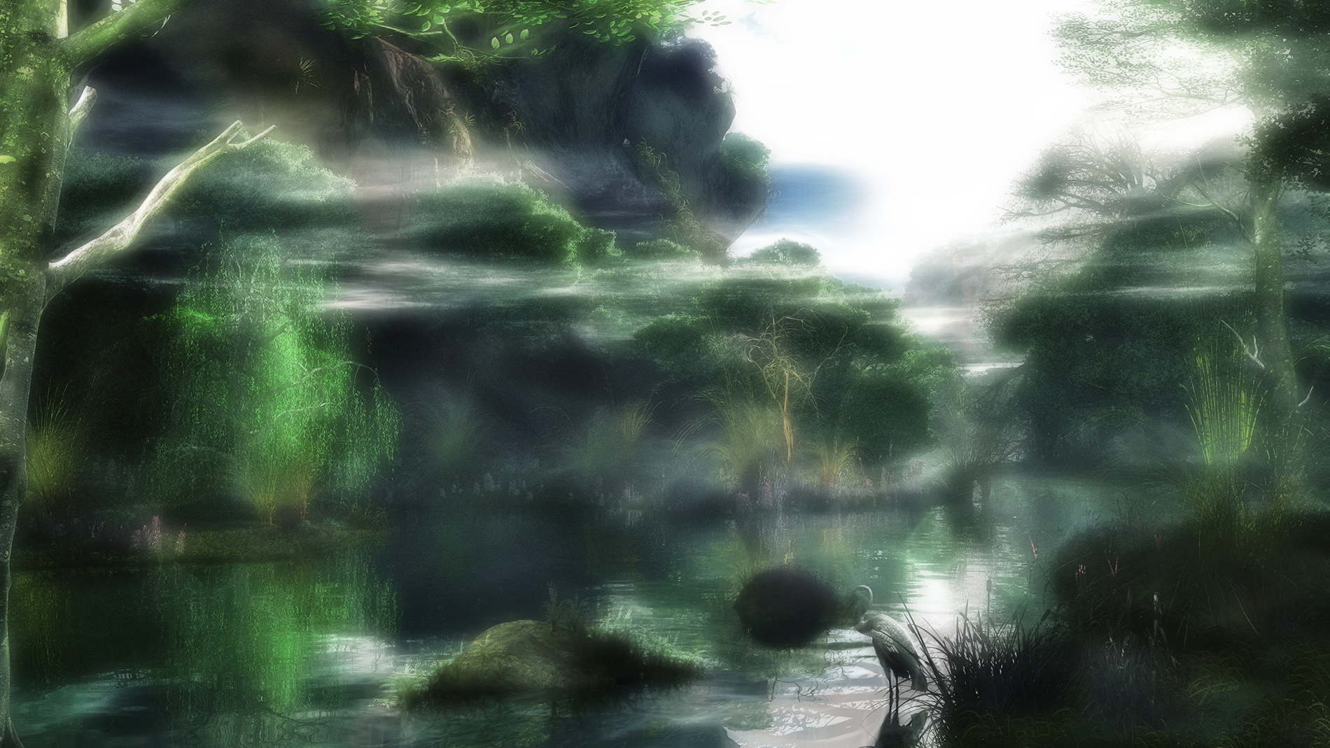 Dieses Bild habe ich Anfang Juni diesen Jahres in Vue erstellt, der Reiher stammt aus Poser, in Vue importiert, dort in die Szene integriert und mitgerendert. Anschließend noch einiges an PW in PS.