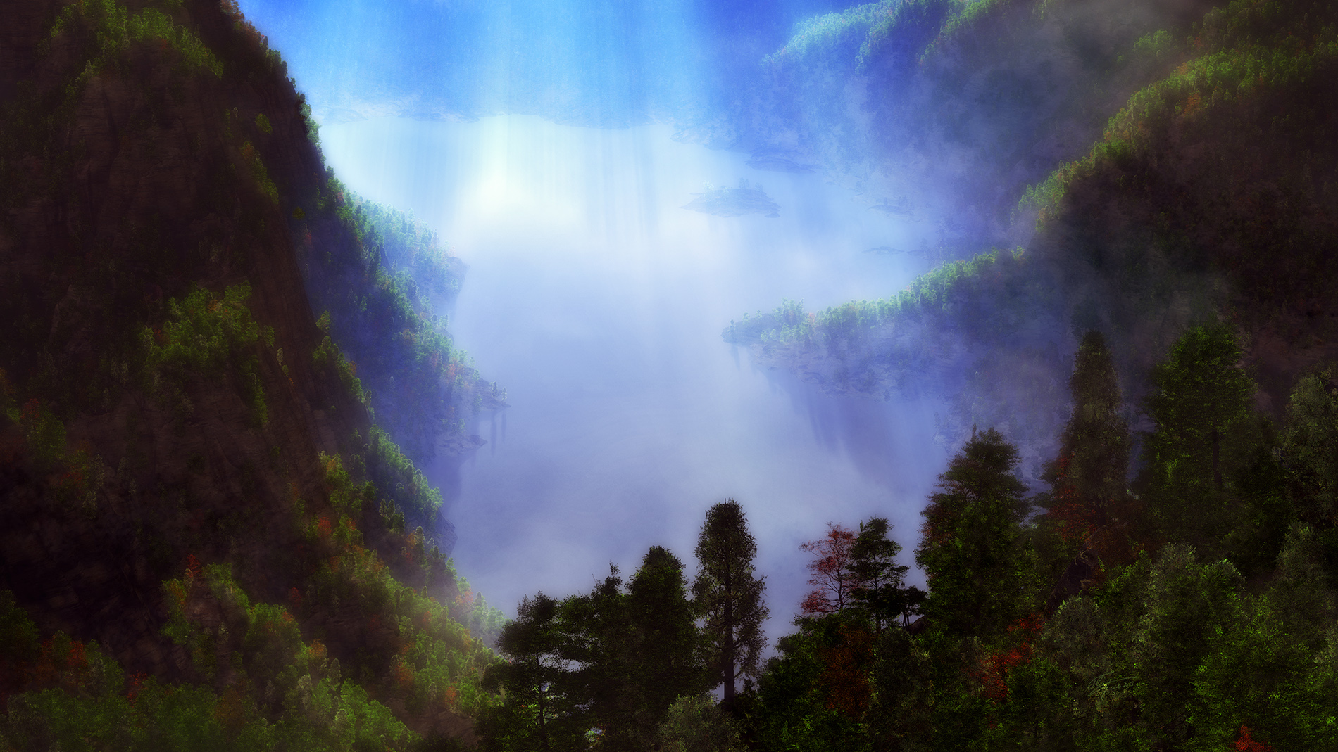 Nocheinmal ein Render von 2016 - das Gelände entstand in WorldMachine, das Gelände und die Bepflanzung dann in Vue.