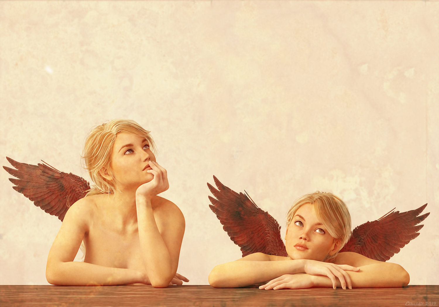 Die zwei Engel nach dem Motiv von Raffael (Sixtinische Madonna).
