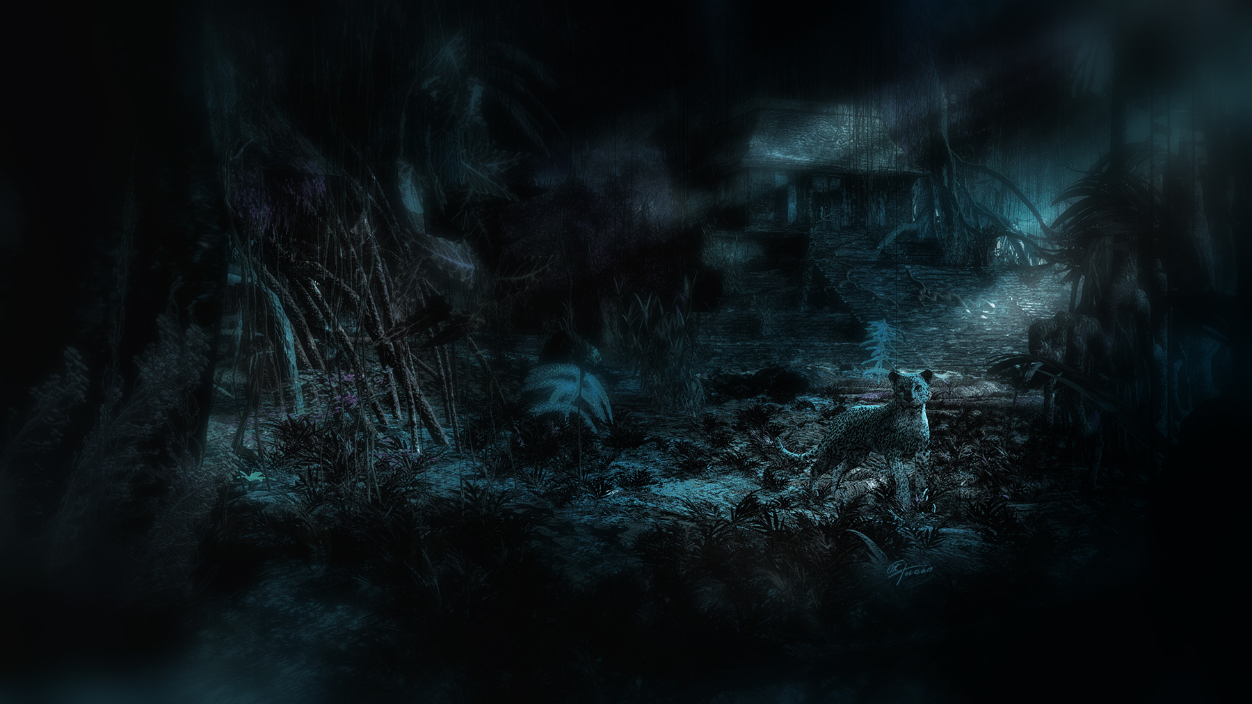 Mystische Dunkelheit durchbrochen von Lichtstrahlen, die gerade soviel erhellen um das Auge des Betrachters in das Bild einzuladen.