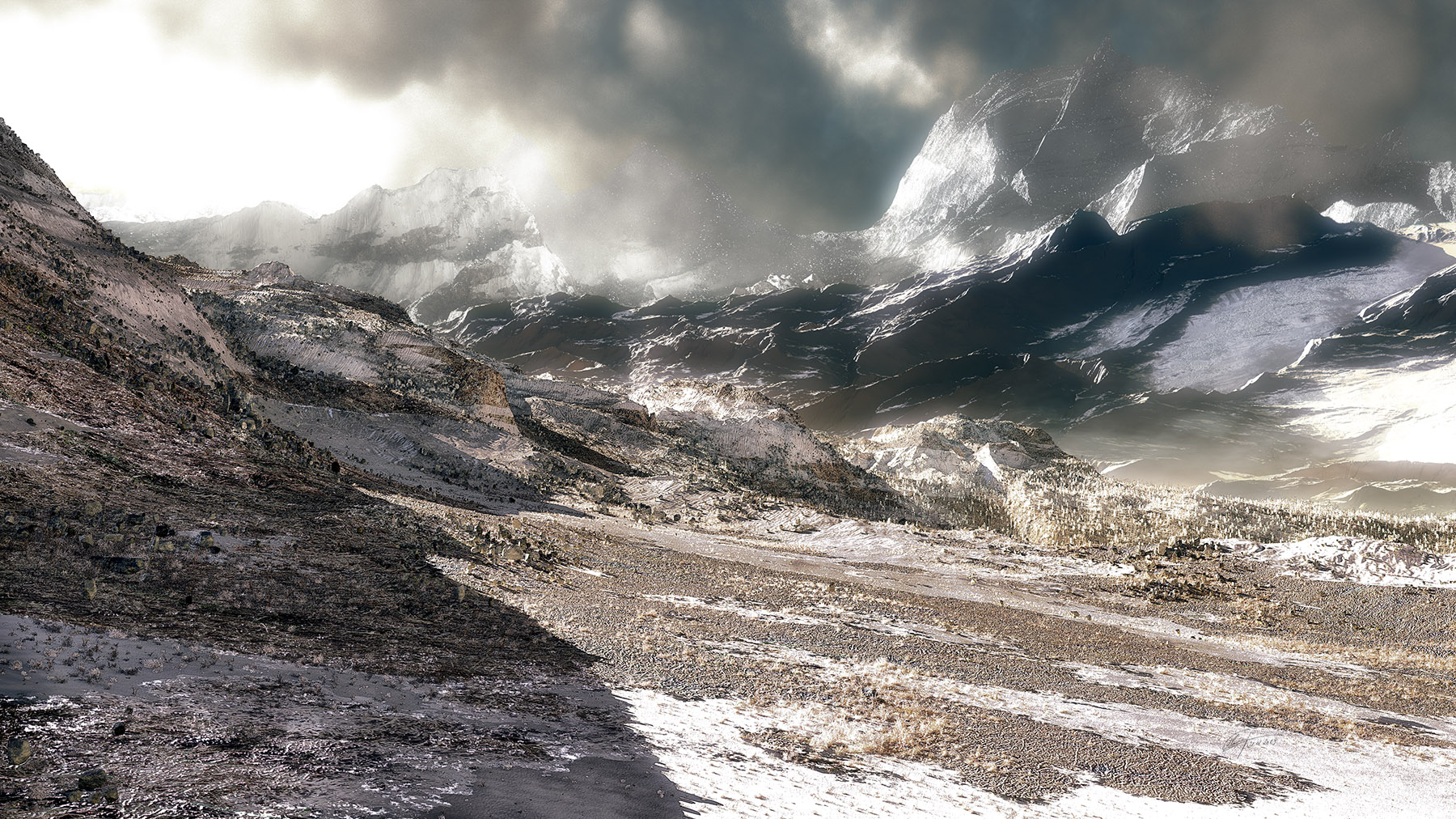 Irgendwo zwischen Paß des Caradras und den Minen von Moria. Zumindest die Stimmung die bei mir da aufkommt. Super gemacht.