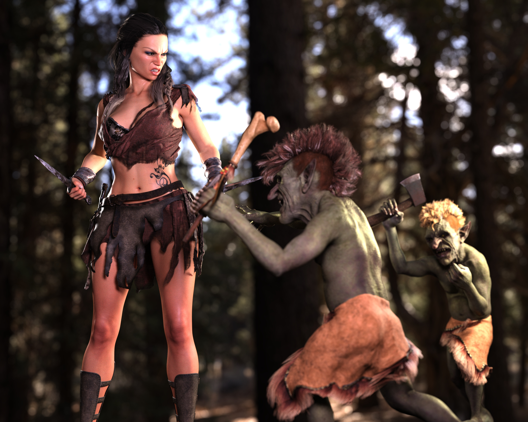Auf ihrem Weg zu neuen Abenteuern wurde Shara von Goblins angegriffen . Schnell zog sie ihre Dolche!