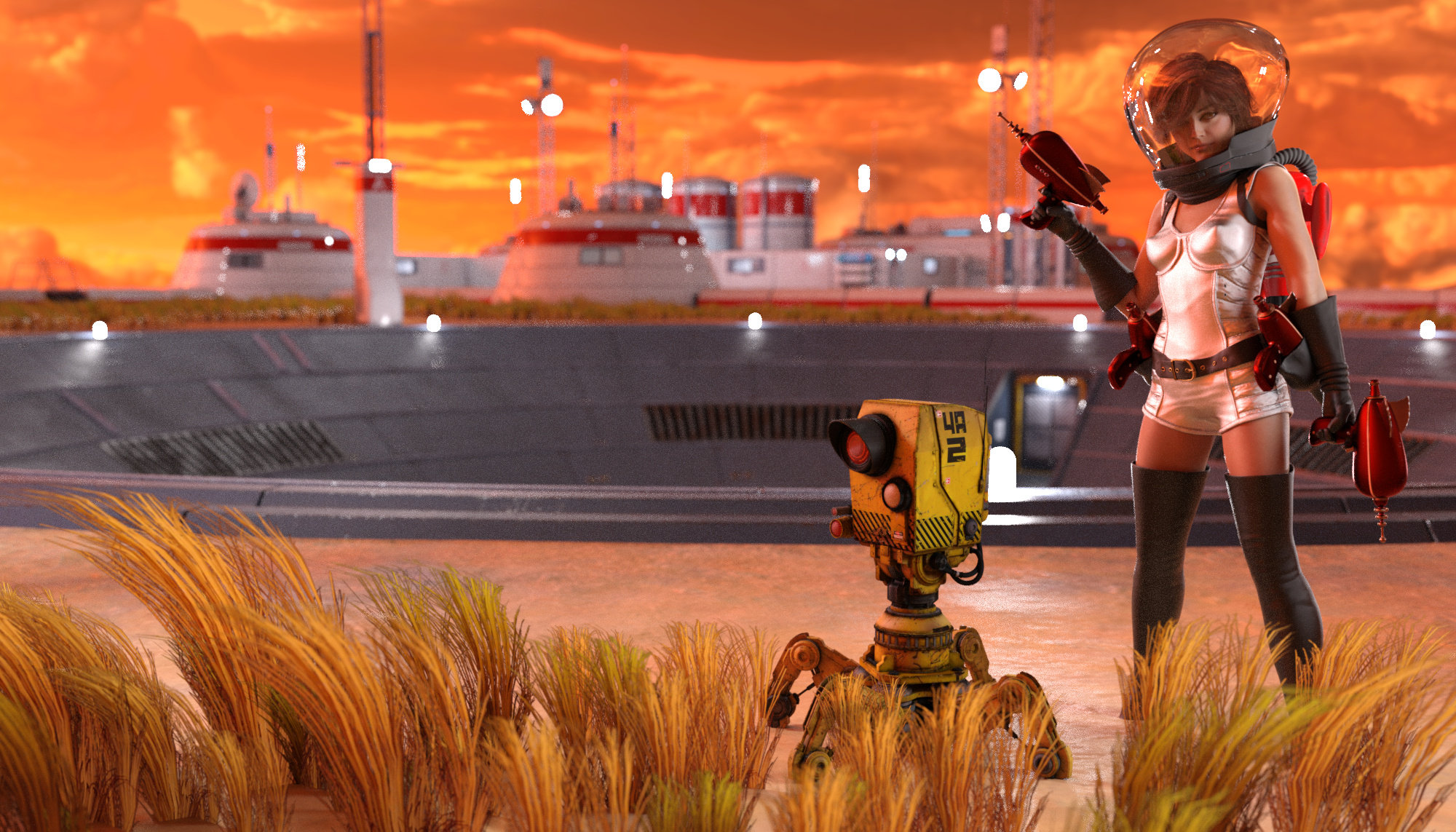 Clara und ihr Freund 4A2 untersuchten eine verlassene Station auf einem fremden Planeten. Sicherlich hatte sie immer genug Feuerkraft dabei! Auch wenn manche es für übertrieben halten würden. Ich frage mich, was ihnen hier bevorsteht.