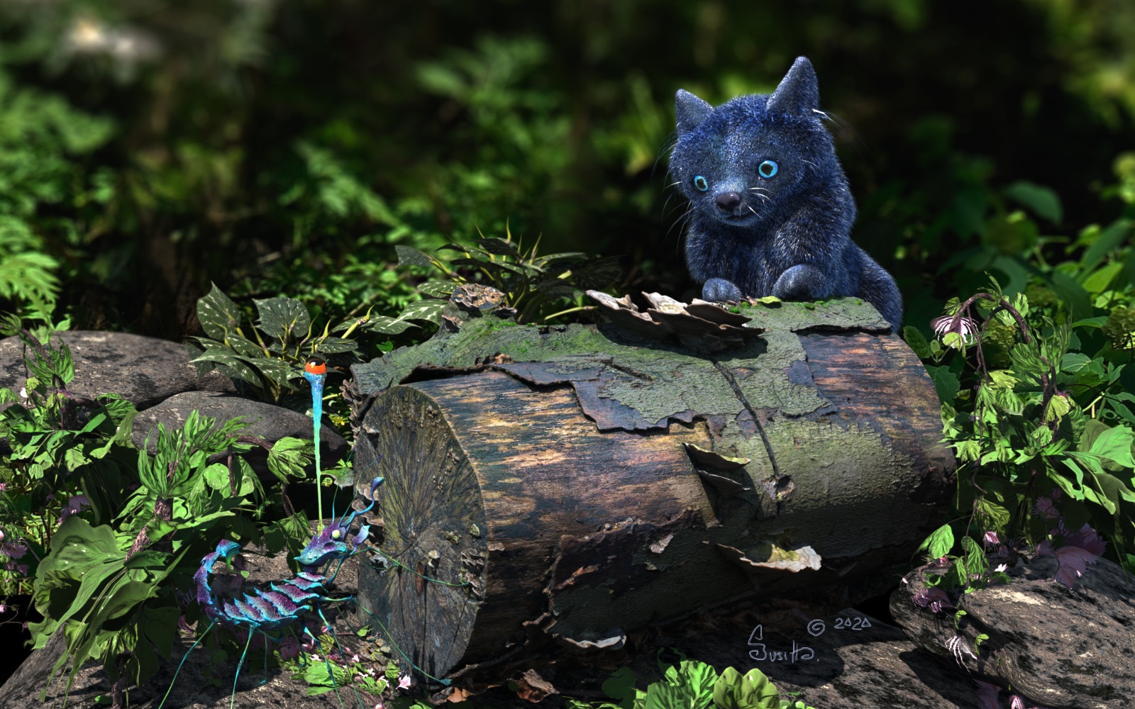 Ein soo tolles Bild. Der Baumstamm, das Eishörnchen und der super Periskopläufer sind super positioniert und dann die vielen mit Vue erstellten Pflanzen echt ganz toll. Ich plane mich auch dieses Jahr mit ZBrush zu befassen (ist völliges Neuland für mich) allein wegen der Fiebermesh Haar Möglichkeit und der Technik mit Brushes zu arbeiten reizt mich.