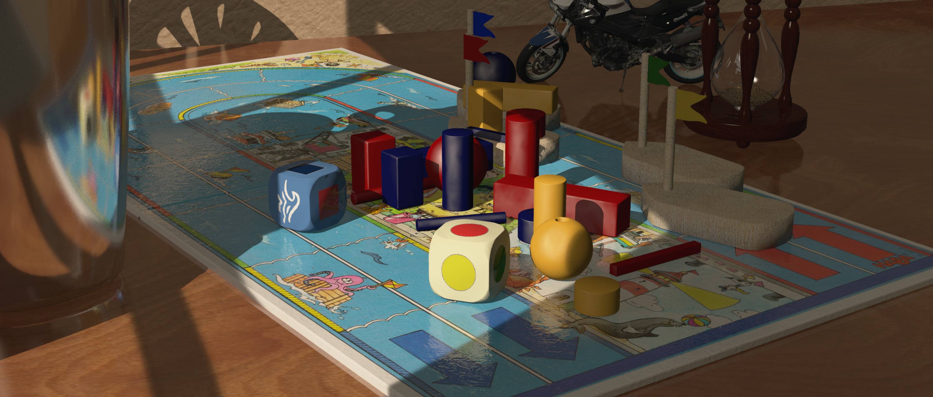 "Das läuft nicht immer rund, so gibt es z.B. eine Welle auf dem blauen Würfel der einem ein Gepäckstück von Bord spült." In diesem Fall ein Motorrad ...