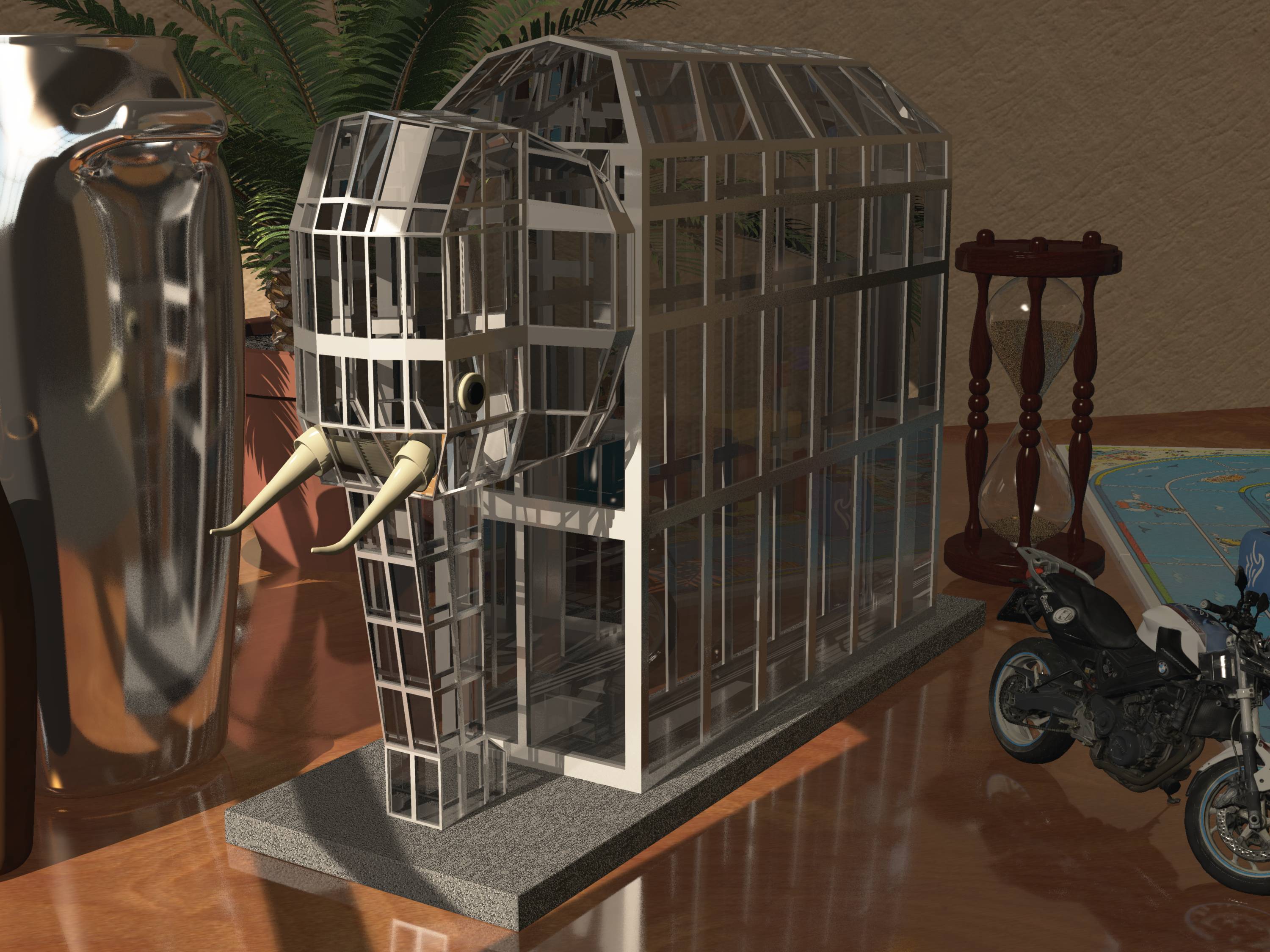 Auf die Idee muss man erstmal kommen ,aus einen Elefanten ein Glasbau zu konstruieren.......suuuuuuuper gemacht