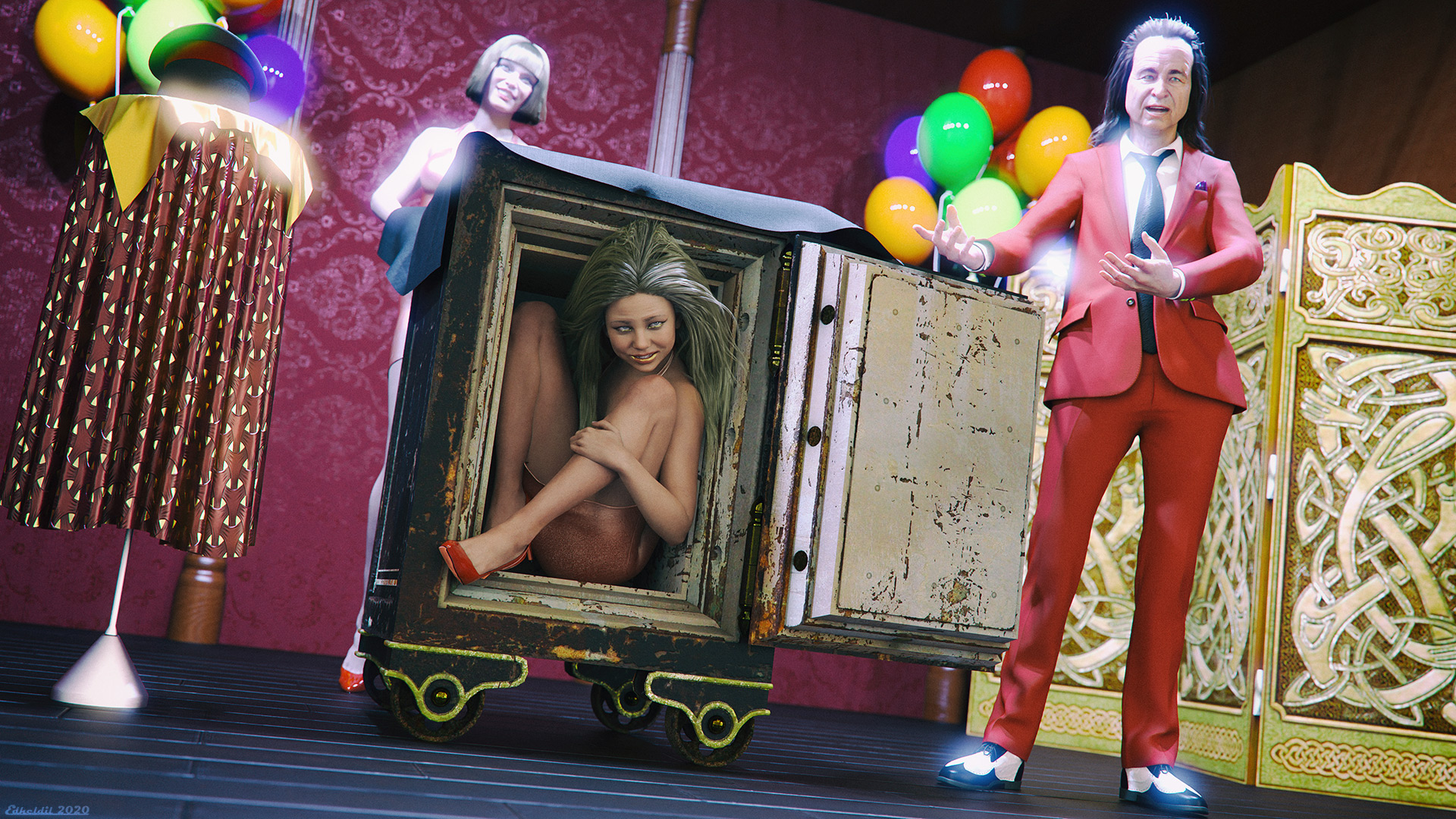 der Magier bekommt den Applaus - das Mädel bekommt die Klaustrophobie!