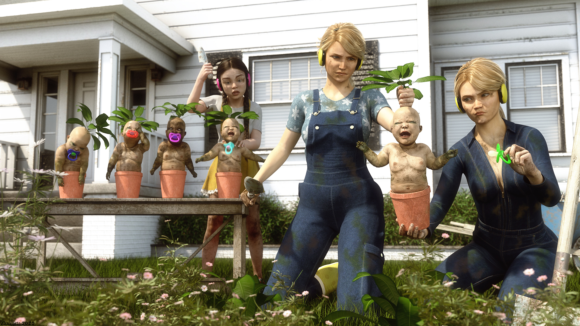 Textur ist die von 'Adria for Genesis 8 Female', die Blätter eine Teil von 'Potting Shed and Tools' und 'Country Kitchen Accessories 1'.