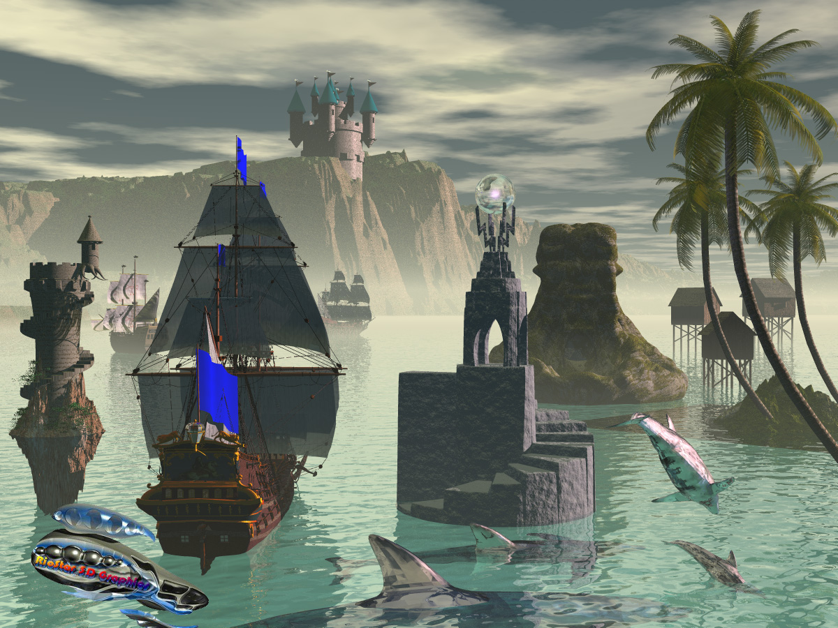 Das ist Bryce?Wie dem auch sei, das Bild lebt von der abstrakten Herangehensweise in Bezug auf die Grössenverhältnisse der Objekte im virtuellen Raum zueinander.