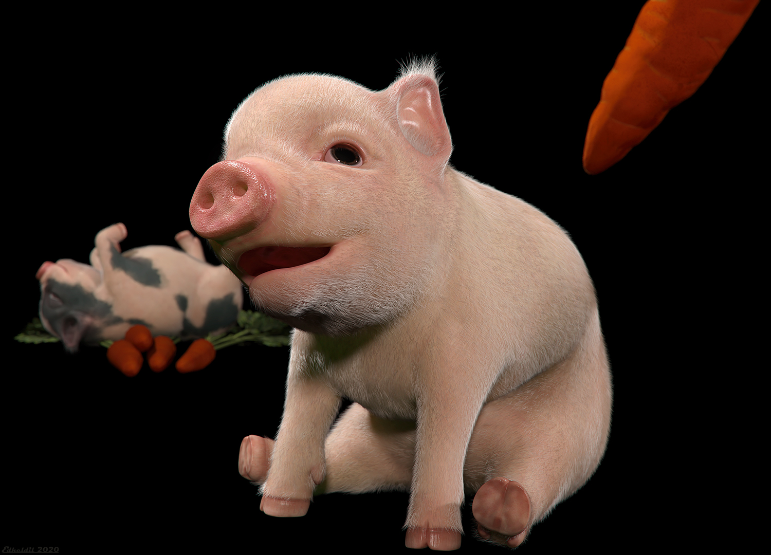 Das Ferkel ist sehr süß. Die Karotten sind ein wenig zu rot auf meinem Tablet.
