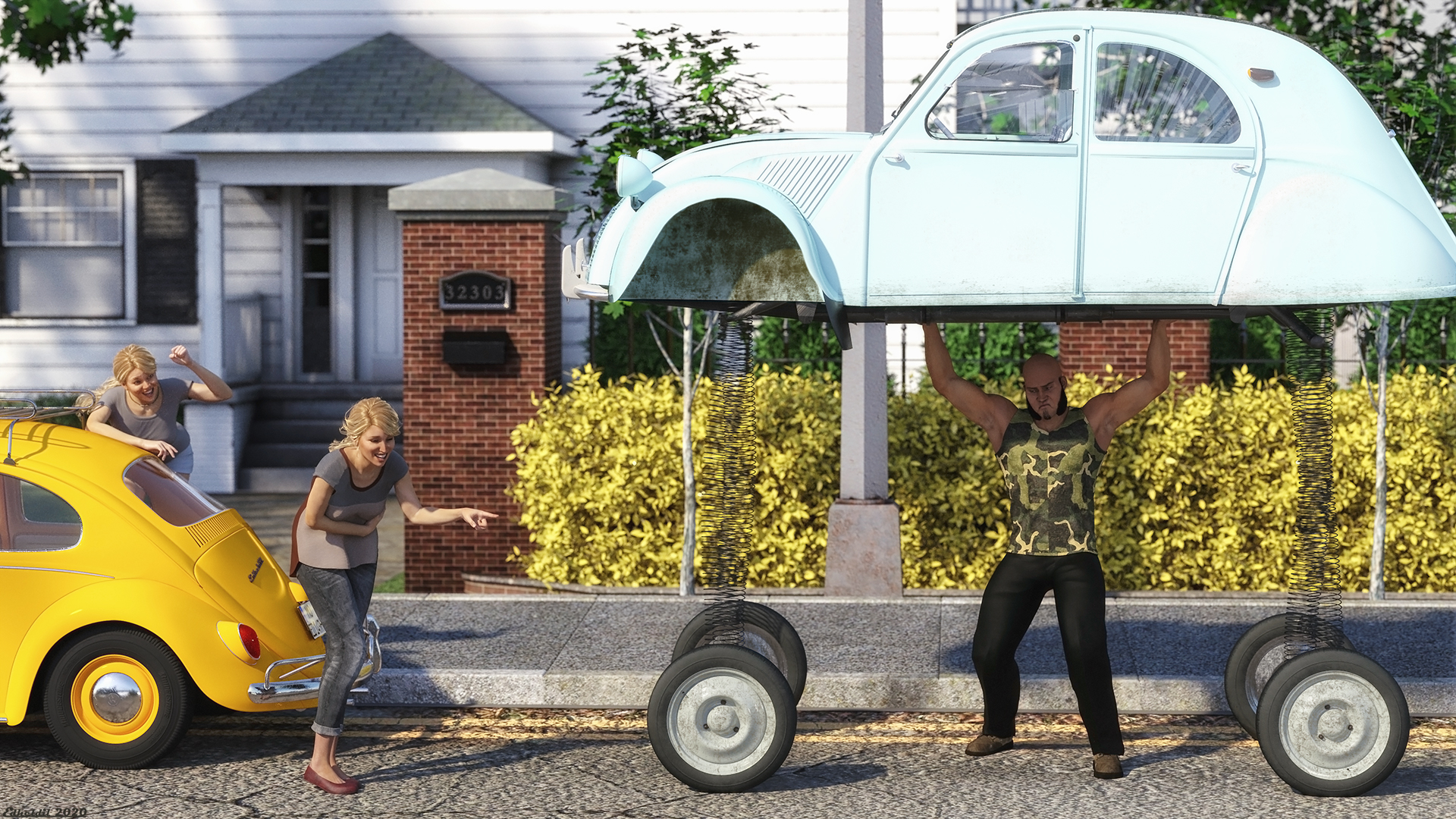 und der Käfermotor auch auf der Straße neben dem Auto.