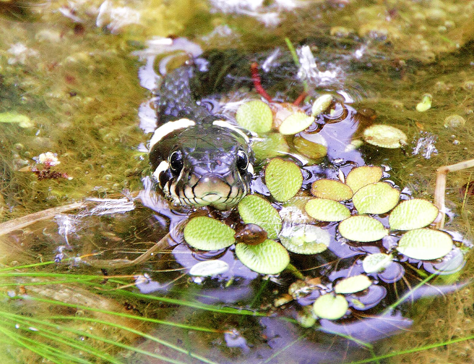 Aah , eine Ringelnatter. Die waren heuer allgmein sehr umtriebig. Bekannte von mir mit Gartenteich hatten einige Sichtungen. Sehr schönes Foto.
