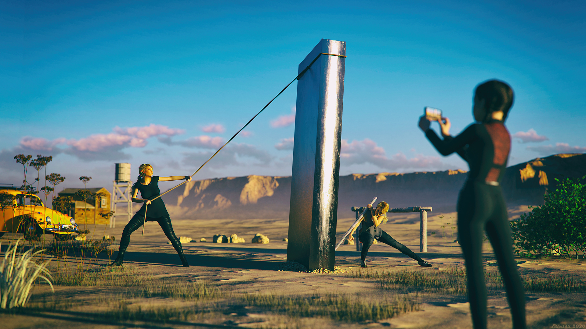 Odyssee 2020 - Ein Monolith für die Götter des Smartphones. Die ehemaligen Affen haben ihr Fell verloren, doch sonst scheint sich nicht viel geändert zu haben. *grinse*