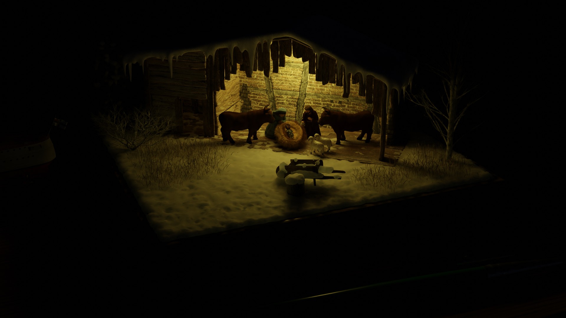 Sehr schöne Stimmung. Ich finde, es ist nicht zu dunkel. Überhaupt Licht in einer Krippe... ein Luxus.