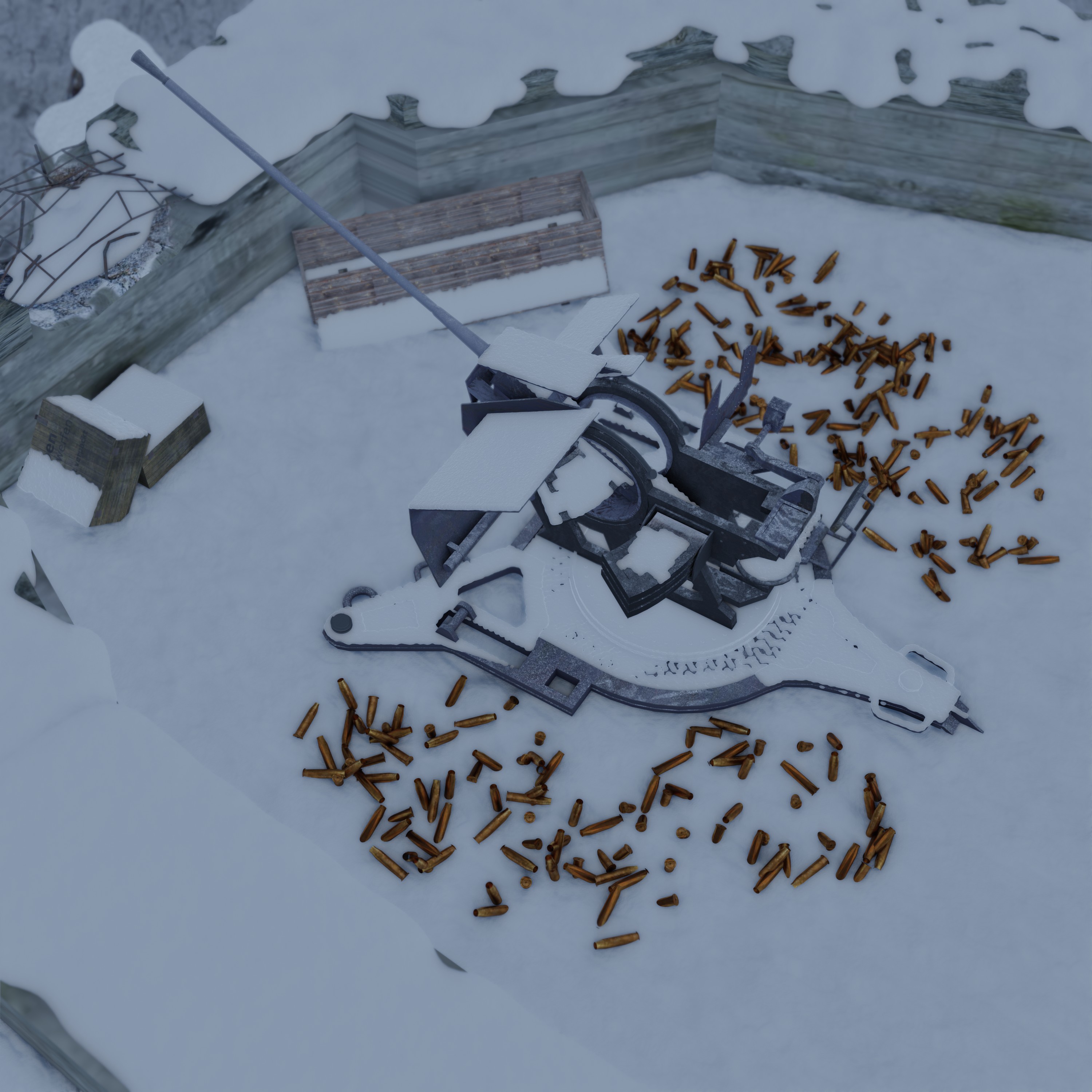 Wenn man wüsste, warum die leeren Hülsen auf beiden Seiten des Geschützes liegen und warum keine Fußspuren zu sehen sind ... sehr mysteriös.
