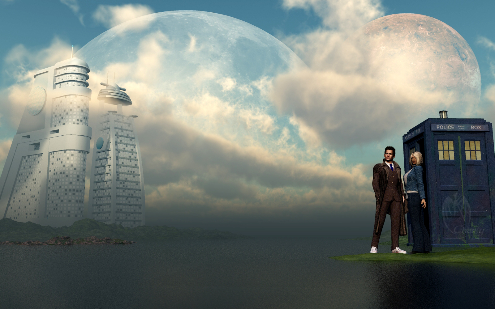Die Frau könnte Rose Tyler sein. Der Doctor ähnelt am ehesten David Tennant.