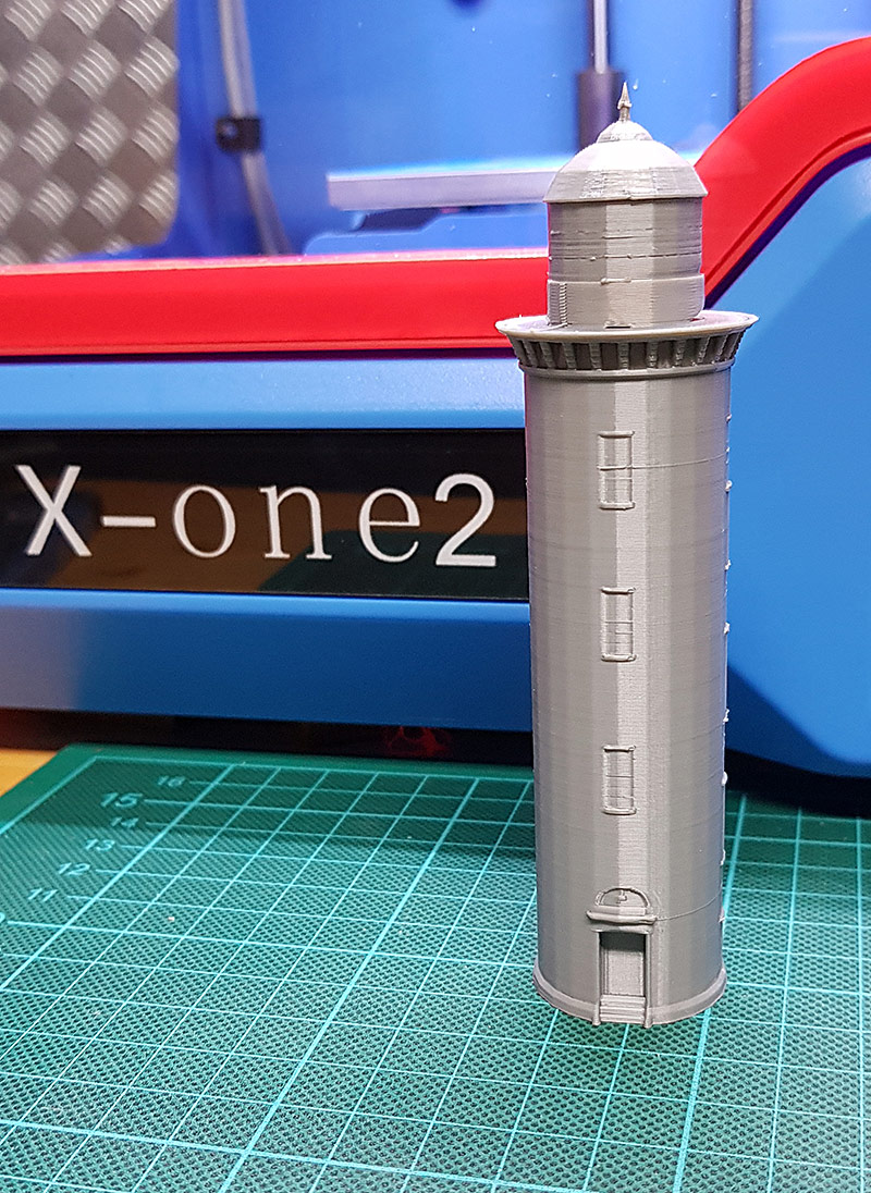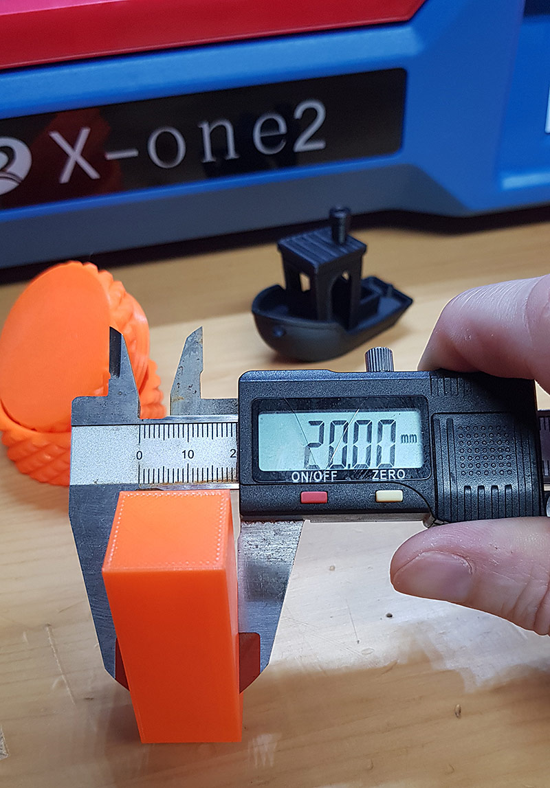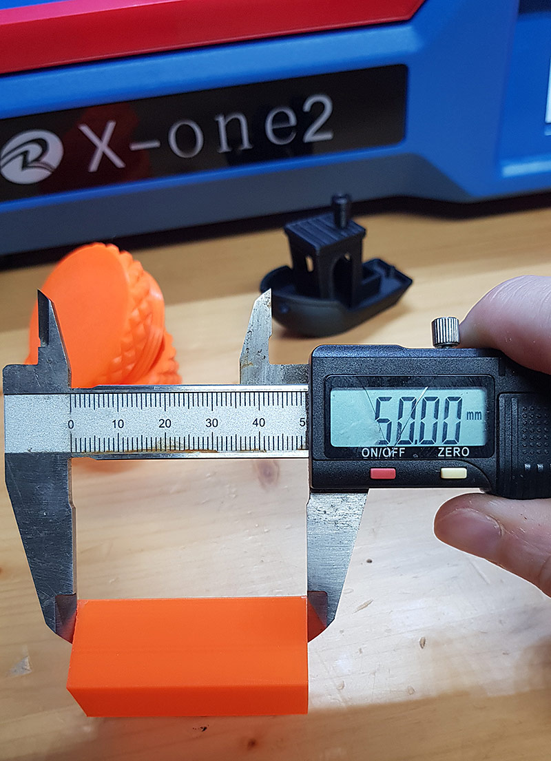 Die Qualität der mit dem X-one2 gedruckten Modelle hat mich vom ersten Testdruck an überzeugt. Die Modelle sind bereits mit den Standardeinstellungen maßhaltig und genau mit minimalen Toleranzen. Auch mit schnellerer Geschwindigkeit und in gröberer Auflösung (Schichtdicke 0,3mm, Geschwindigkeit 80 mm/s) gedruckte Objekte waren von vorzeigbarer Qualität.