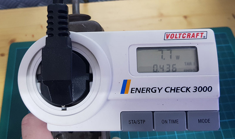 Gemessener Stromverbrauch im Leerlauf (LED-Beleuchtung an)