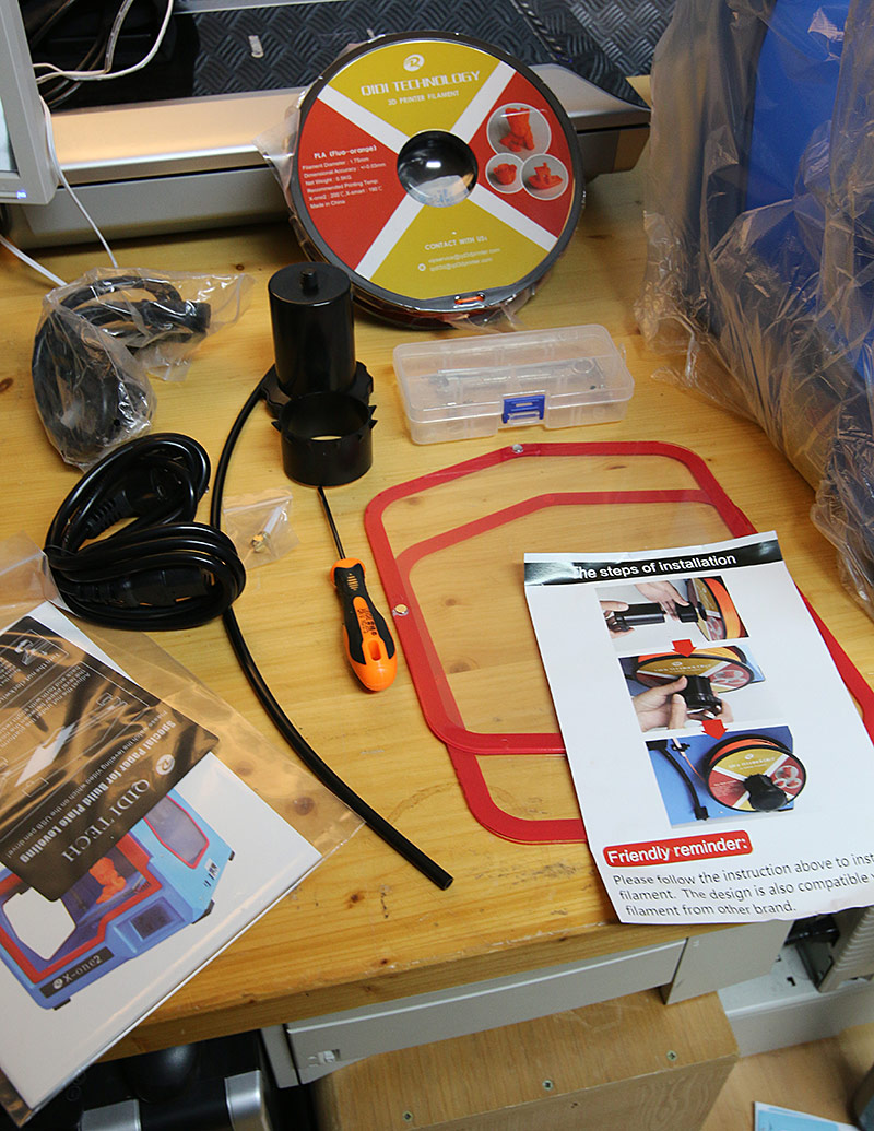 Bestellt habe ich den Drucker der chinesischen Firma Ruian Qidi Technology Co., Ltd. - http://www.qd3dprinter.com/ - über Amazon.de und obwohl als Langstrecke gekennzeichnet (der Versand erfolgte aus UK), war der Drucker bereits innerhalb von drei Tagen bei mir. Das Paket kam super verpackt bei mir an (doppelter Karton, gut gepolstert).