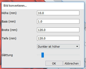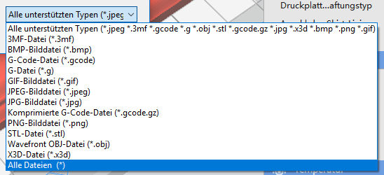 Mögliche Dateiformate sind, neben 3D-Formaten wie OBJ und STL, auch Bilddateien. In das Programm geladen, werden sie durch die Software für den 3D-Druck aufbereitet, indem die Bilder als Heightmaps interpretiert werden.