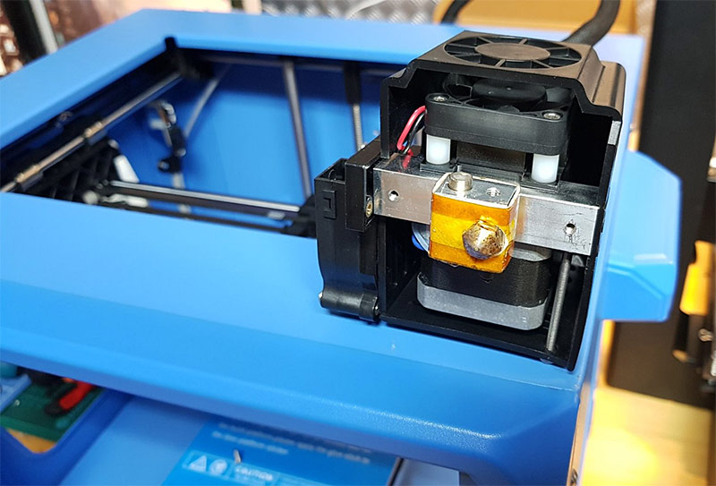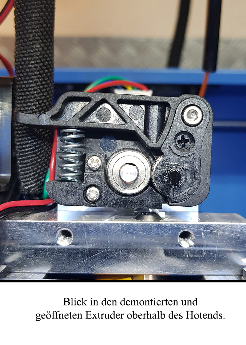 Auf der SD-Karte befindet sich dazu ein Anleitungsvideo, dass alles wunderbar erklärt. Es sind lediglich 4 Schrauben zu lösen um den Druckkopf von der Führung zu lösen. Danach kann man bequemer arbeiten und die Düse wechseln.