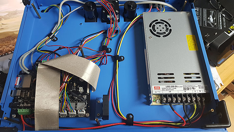 Öffnet man den Drucker von unten, hat man u.a. Zugang zu dem Mainboard und dem Netzteil. Auch hier findet siche ien saubere Verarbeitung. Als Stromversorung verbaut ist Markennetzteil mit 24V und 14.6A Ausgangsleitung (Mean Well LRS-350-24, Datenblatt auf der Seite des Netzteil-Herstellers).