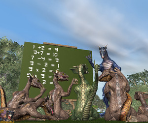 • Na wenn die Rechenergebnisse auf der Tafel richtig sind, dann kann ich ja sogar noch was lernen. Haste die Dinos selbst gemogelt?