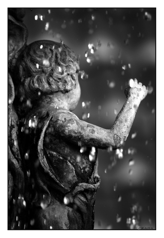 Wassertropfen fallen wie einsame Gedanken vom Himmel.