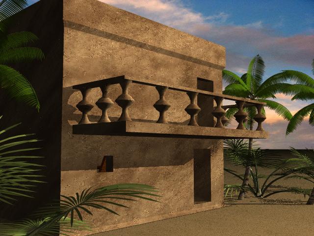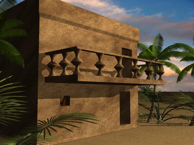 Passent zur der Hitze habe ich eine Sahara Bild gemacht. Dazu habe ich das Gebäude gemacht und die Pflanzen importiert und eigefügt. Ich habe noch bei dem Haus kleine unebenheiten eingebaut also so kleine löcher vielleicht sieht mans.