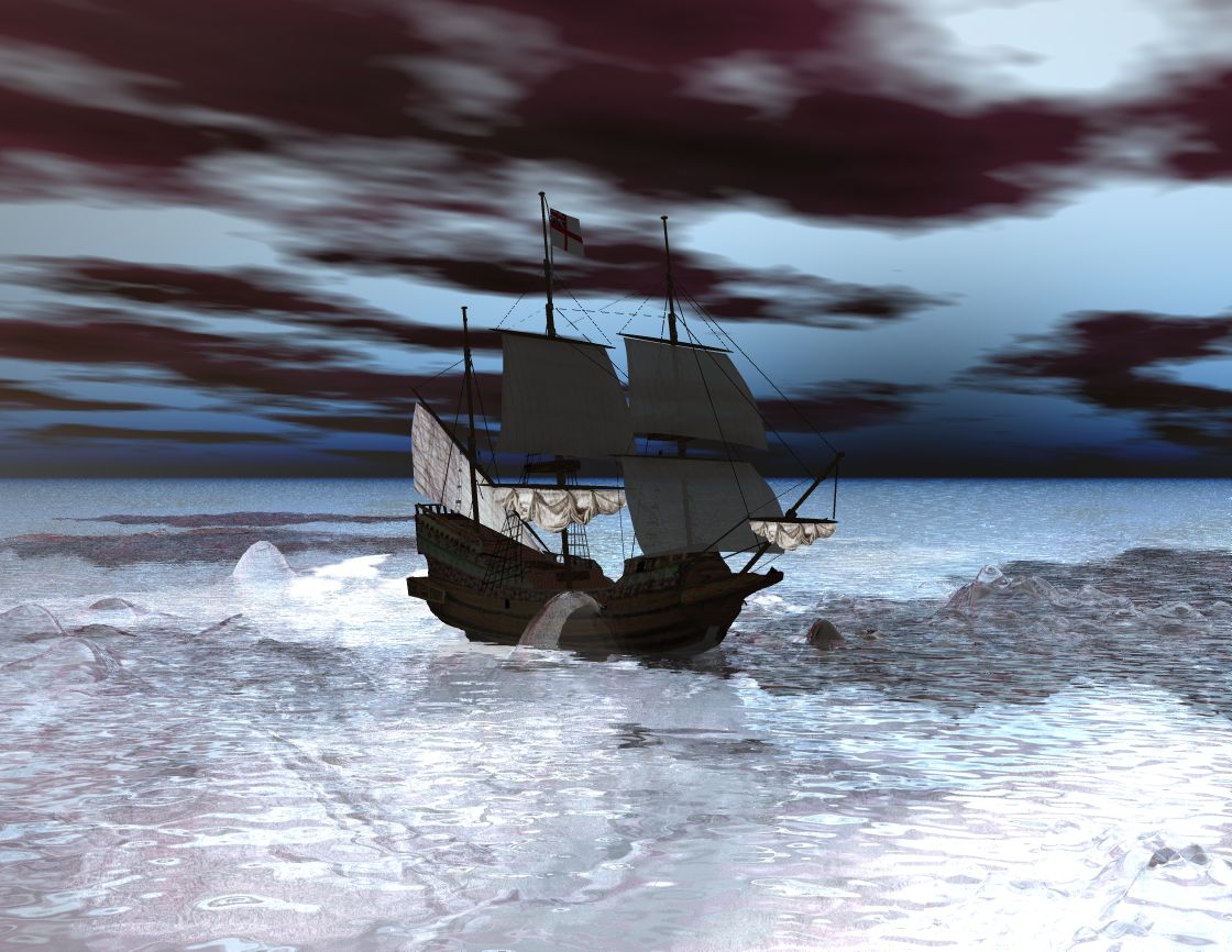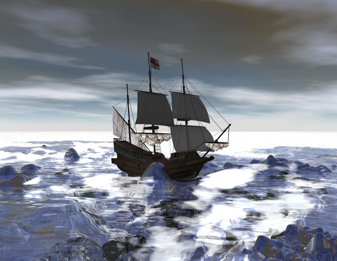 dieser himmel ist auch ok, ich finde den ersten hättest du ruhig lassen können, der rotanteil darin hatte was. ich meinte das mit dem sonnenstand eher bezogen auf das reflexionsverhalten der wasseroberfläche und damit das schiff nicht so einförmig dunkel rüberkommt. vielleicht versuchst du auch nochmal einfach ein anderes wassermaterial? ein wenig transparenz zwischen dem schaum übrig zu lassen - so wie rechts am bildrand- wär echt nicht schlecht. die klippen hast du jetzt etwas entschärft, oder die gehen in der gischt unter. das gibt dem bild natürlich jetzt einen ganz anderen charakter. sieht nicht mehr so gefährlich aus..