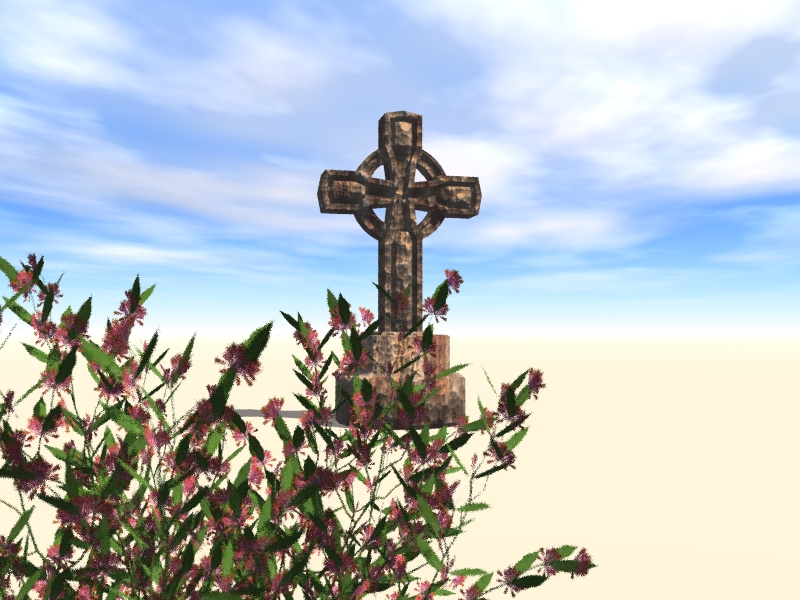 Der sogenannte Himmel ist eigentlich nichts anderes wie ne Plane die ne leicht gräuliche tex bekommen hat und so ne leicht transparente flauschige Umgebung dazu.Weshalb die dann so gräulich mit nen kleinen touch blau hat kann ich leider nicht sagen.Ursprünglich wollte ich sie nach den 1.Testrender weiter bearbeiten,aber als ich dann das Resultat sah...dachte ich,dass ich sie so lassen könne.