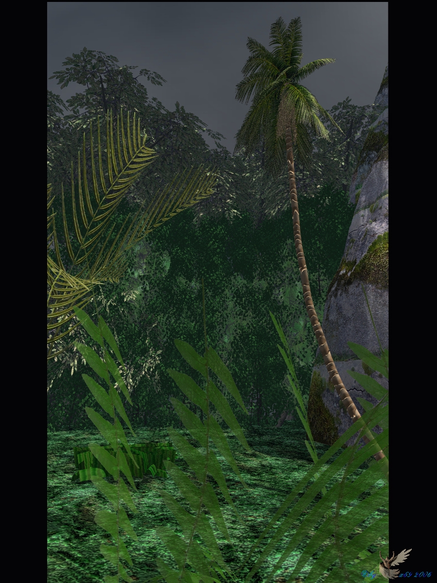 Den kriegst Du auf jeden Fall besser hin. (Ich weiss nicht was das fürn Ding am Boden hinter dem linken Vordergrund-Farn ist, scheint mir ein Artefakt von der Textur zu sein wo die Höhenparameter noch korrigiert werden müssen.