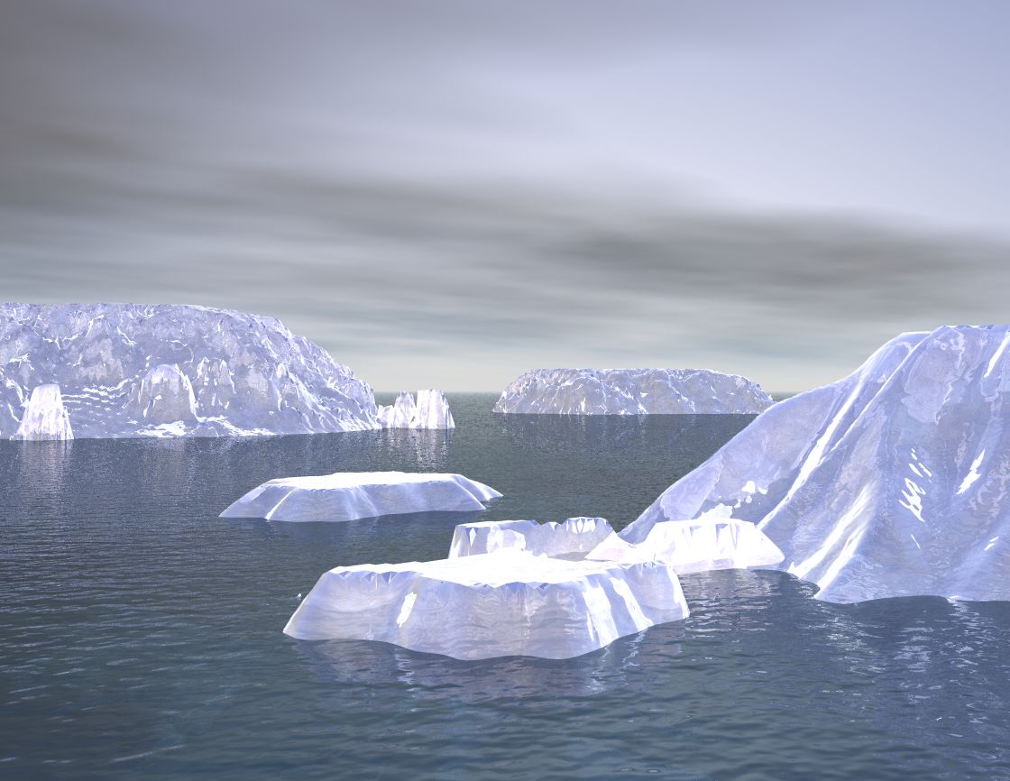Eine weitere Möglichkeit (welche aber dann auch länger zum Rendern braucht) wäre, die Eisberge zu duplizieren und das jeweilige Duplikat ein wenig kleiner zu machen, so dass es ganz unter der Oberfläche des äußeren Eisberges verschwindet. Dem Duplikat innen weist Du dann eine weniger transparente Oberfläche zu, möglichst mit Weissanteil. Den Prozess kannst Du mehrmals wiederholen und die inneren Schichten immer undurchsichtiger machen. Das kann, abhängig von den Grundeigenschaften des Materials, eine total coole Tiefenwirkung erzeugen.