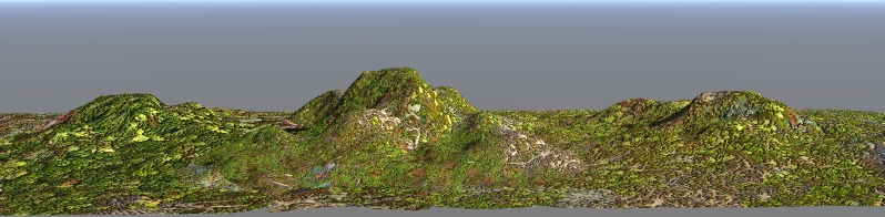 - bischen weichere Auflösung der hart wirkenden Gras-/Wassergrenze vorne, evtl. etwas Sand dazwischen. Muss aber nicht sein, wenn Gras direkt bis ans Wasser wächst empfiehlt es sich ersatzweise, hier und da ein paar kleinere Grasstengel / -halme so zu platzieren daß sie die Kante noch etwas kaschieren. ( Vielleicht wirkt es bei näherem Hinsehen auch nur etwas verwirrend dass die kleine Böschung vorn nicht zum Wasser hin rund abzufallen scheint, sondern eher flach aussieht. Das scheint mir aber mit der Bumpmap und dem Projektionsverhalten der Pflanzentextur zusammen zu hängen...)