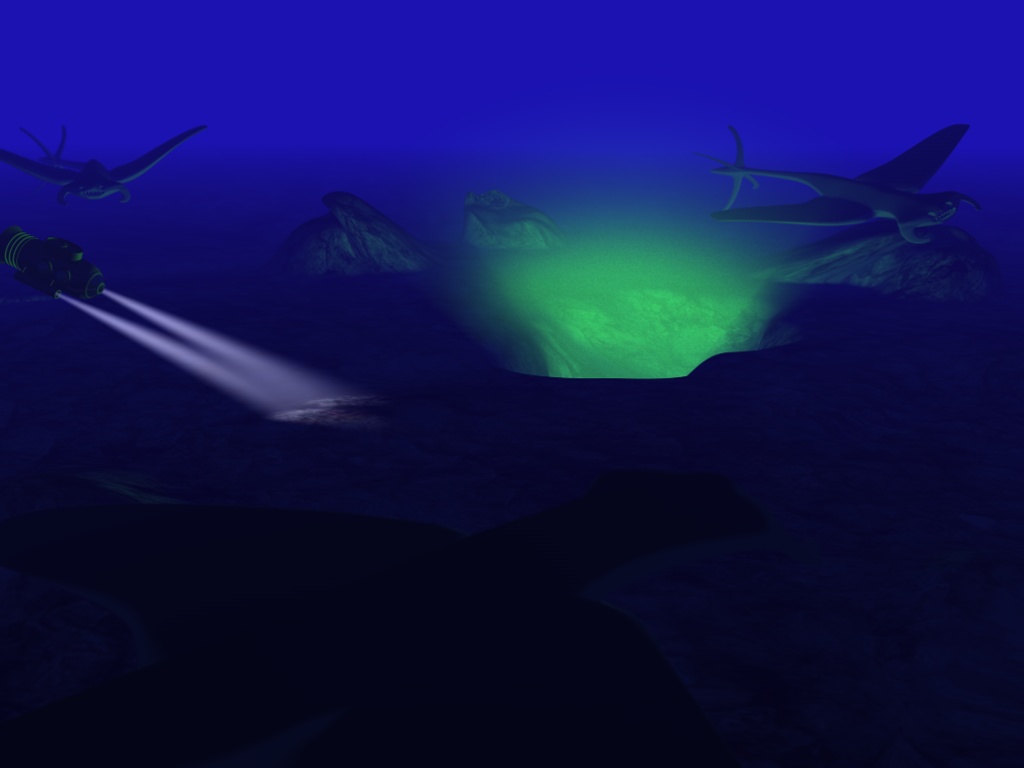 Surface unheimliche Tiefen. Grünes Licht das aus einem Loch kommt sieht ziemlich danach aus ;P.