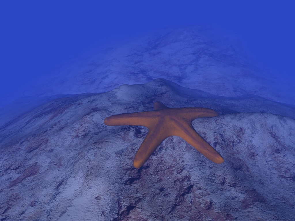 Die Stimmung und das Gestein kommen affenscharf! Das Farbkleid der Seesterne ist auch gelungen, nur sind die Jungs noch irgendwie zu glatt. Die haben ja ihre Sinnesorgane auf den Oberseiten der Fangarme (in den dunkler bräunlichen Bereichen Deiner Textur).