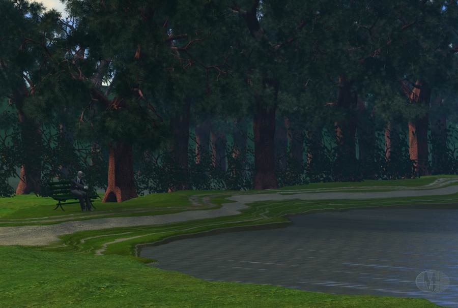 Ich habe Word Machine wieder entdeck. Ein echt super Programm für die Gestaltung von Terrains. Wenn man sich durch die Bedinungsanleitung gequält hat bekommt man damit wirklich gute Terrains hin. Kann es nur empfehlen. Die Uferböschung ist mit diesem Programm erstellt. Der Baum ist von der Renderrosity und die Parkbank ist aus dem Gartenset von lule2 hier aus dem Downloadbereich.