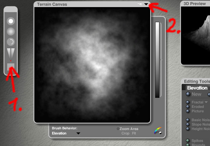 Punkt 1. = Werkzeug zur Auflösungsänderung fürs Terrain