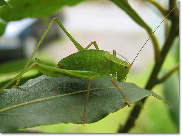 Heute Morgen hatten ich und mein Lorbeer netten und ziemlich grünen Besuch ...