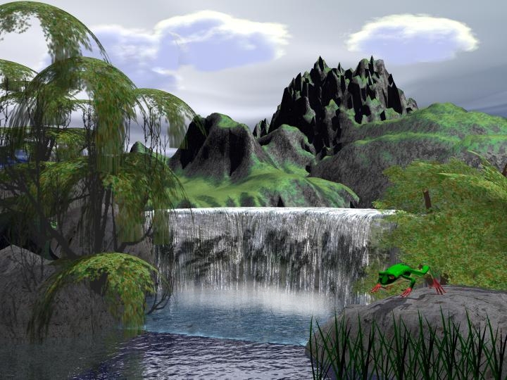 Den Wasserfall habe ich in Bryce 4 angefangen und habe ihn in Bryce 5.5 zur Vollendung gebracht. Insperiert wurde ich durch ein Tutorail von Yoro.