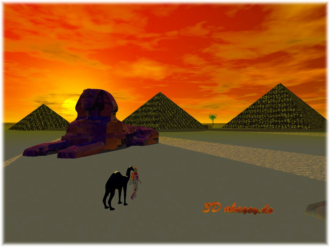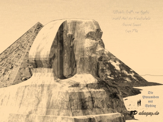 Die Texturen der Pyramiden habe ich nochmal überarbeitet, jetzt mit Orginalfototextur. Fotografien (als "Echtheitsbeweis" eine Postkarte aus dem 2ten Weltkrieg! );), geänderte Bilder und Link habe ich angehängt. Bei der Sphinx, oder heißt es "der Spinx" weil es sich um einen Pharao handelt ?(, ist es sehr schwierig, trotz Orginalfototextur, eine eingermaßen gute Sandsteintextur zuerstellen. Dazu müsste man wohl die Sphinx zerschneiden und das ist mir noch nicht gelungen ![]()