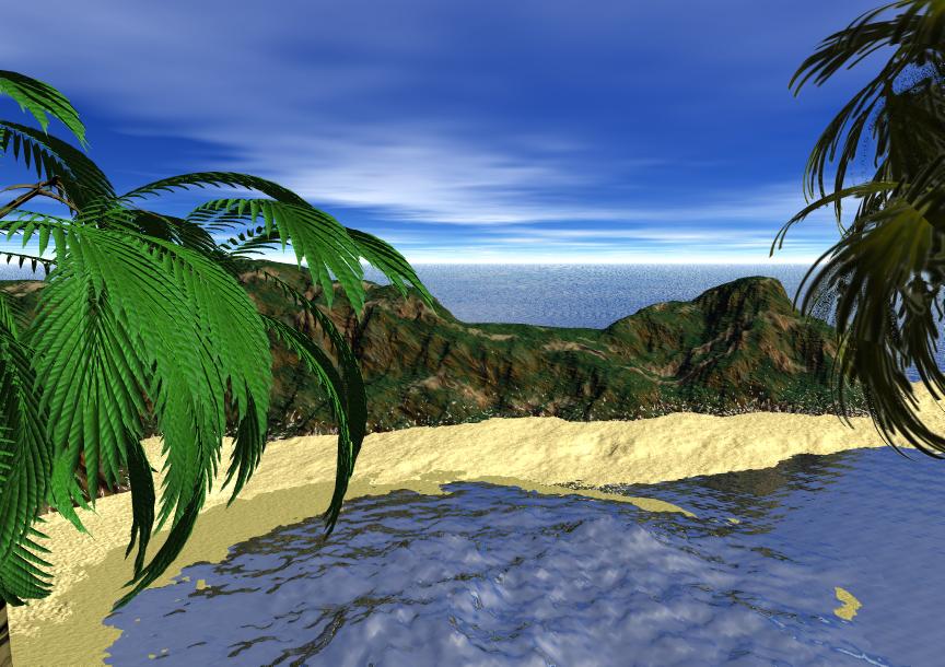 Jetzt brauchst Du nur noch demSandstrand ein besseres, natürlicheres Material zuzuweisen (dieser weisse Standardsand von Bryce war immer schon gruselig, aber es gibt horrende Mengen wirklich guter Sandtexturen als Bryce .mat`s zum freien Download...)